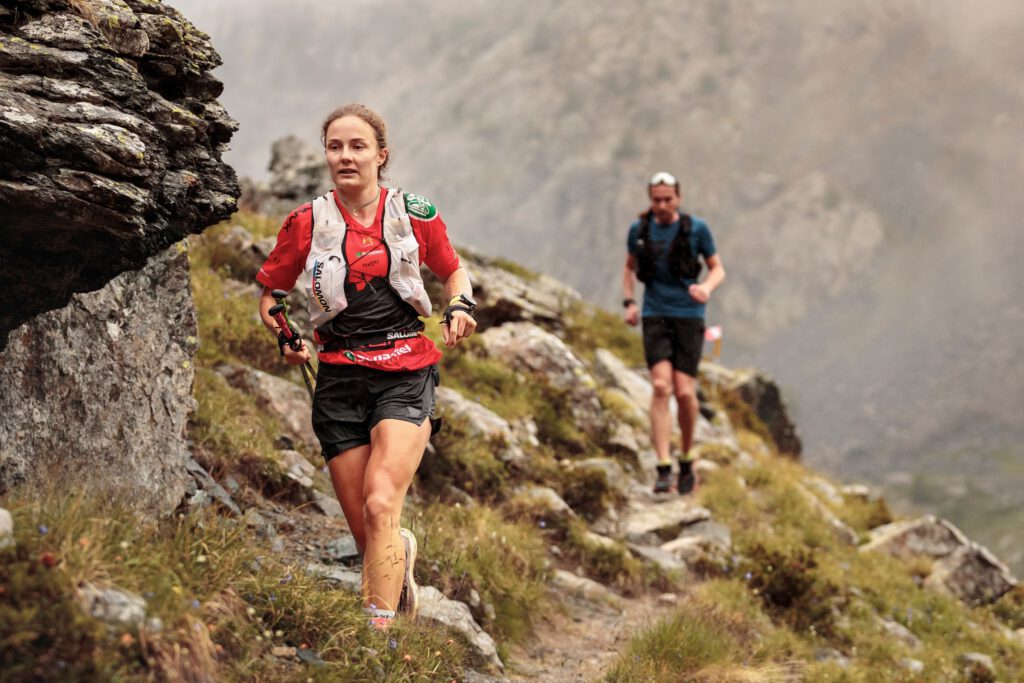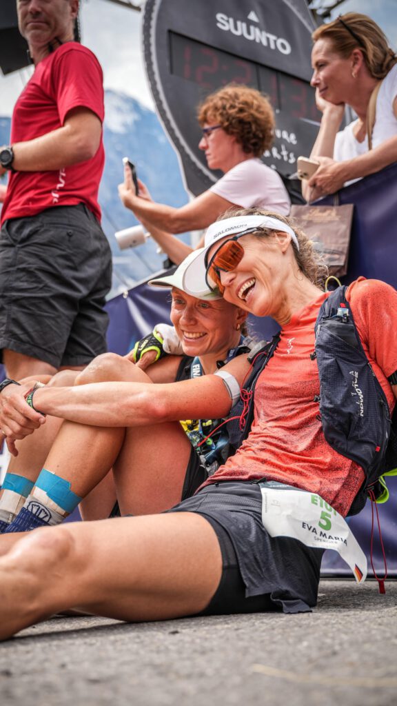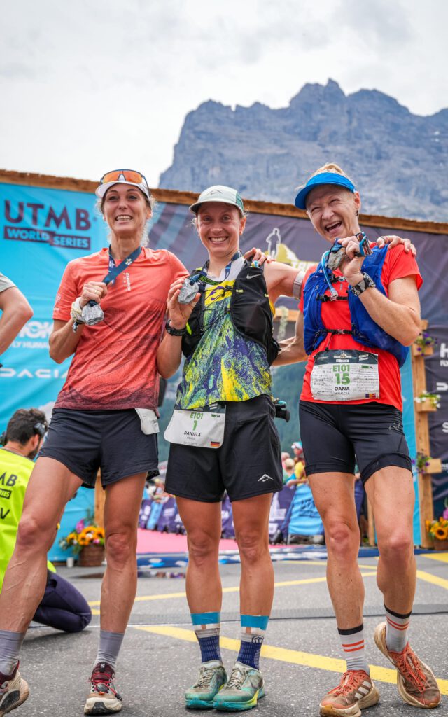 Daniela Oemus, Eva-Maria Sperger und Beliana Hilbert gingen auf die modifizierte E101-Strecke, die aufgrund der Verkürzung noch 68,6 km und 4.414 Hm aufwies. Die drei Deutschen führten das Frauenfeld in der ersten Rennhälfte an, bis Beliana Hilbert schließlich aufgrund von Fußproblemen aussteigen musste. Es entwickelte sich ein Kopf-an-Kopf-Rennen zwischen Daniela Oemus und Eva-Maria Sperger. Nachdem Oemus lange Zeit in Führung lag, holte Sperger auf und setzte sich am Kleinen Scheidegg bei km 52 an die Spitze. Es sah dann so aus, als würde die Salomon-Athletin nach zwei zweiten Plätzen beim Eiger (2018 & 2024) endlich mit einem Sieg belohnt werden – doch wie schon im Vorjahr war es der letzte Anstieg, der Sperger um den Sieg brachte. Am Pfingstegg, erst 4–5 km vor dem Ziel in Grindelwald, holte sich Daniela Oemus die Führung zurück – und gibt noch einmal alles. Im Ziel trennen die beiden Frauen sogar ganze 10 Minuten, was das starke Finish von Daniela Oemus unterstreicht. Im Ziel sieht man die beiden Athletinnen, die privat befreundet sind, lachend am Absperrgitter sitzen. Auf Strava schreibt Oemus: „War ein knappes Ding und ein echter Kampf… Und es tut mir irgendwie leid, dass du wegen mir nun nochmal Zweite geworden bist, Eva-Maria Sperger.“