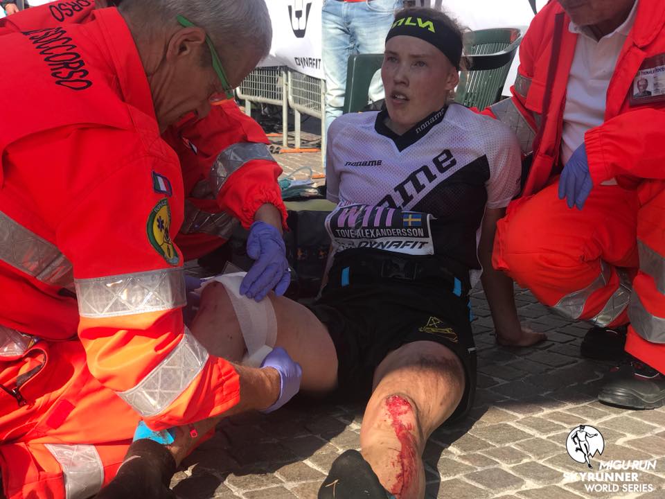 Das erste Mal, dass ich Tove Alexandersson sah, war auf einer Party. Im Jahr 2017, als die Skyrunner World Series und ihr Finale beim Limone Skyrace noch ein richtiges Ding waren, hatten die Veranstalter am Strandboulevard von Limone ein Partyzelt aufgebaut. In diesem Zelt drängelten sich eng an eng durchtrainierte Skyrunner-Waden. Die Stimmung war ausgelassen, auch bedingt durch das ein oder andere Kaltgetränk, das die Kehlen jener Körper hinunterfloss, die sonst eher Höhenmeter als Hochprozentiges gewohnt waren. Ich glaube, Tove geht nicht oft auf Partys. Und auch auf diese wurde sie wortwörtlich geschoben. Im Rollstuhl sitzend wurde sie von ihren Freunden in das Zelt gefahren. Einige Stunden zuvor hatte sie das Limone Skyrace in beeindruckender Manier gewonnen. Es war ihr erstes Trailrennen überhaupt. Nach einer langen Orientierungslauf-Saison war sie mit Freunden am Gardasee im Urlaub gewesen und hatte sich relativ spontan für das Rennen angemeldet. Ihre Vorbereitung lässt sich mit zwei Worten zusammenfassen: nicht existent. Vom Orientierungslauf war sie kurze Belastungen bis etwa 90 Minuten gewohnt. Während des kompletten Rennens, das für sie 3,5 Stunden dauern sollte, nahm sie nur zwei Gels zu sich. Doch das Tempo zu reduzieren war für die führende Schwedin keine Option. Mehrmals stürzte sie im letzten schweren Downhill. Blutüberströmt erreichte sie das Ziel, in das sie mehr hineinfiel als lief. Mit letzter Kraft versuchte sie im Fallen das Zielbanner mit der rechten Hand herunterzureißen, blieb aber letztlich unter dem Banner liegen. Diese letzten Meter ins Ziel sollten für die nächsten Tage ihre letzten Schritte gewesen sein.