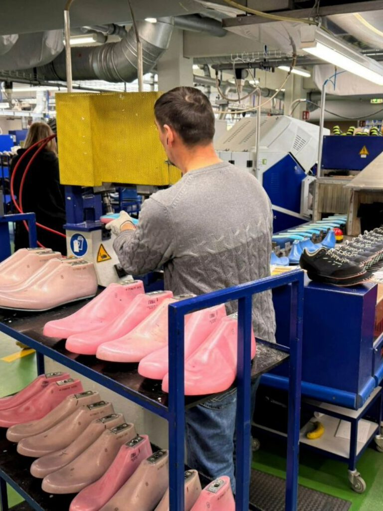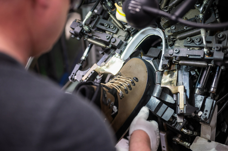 In LOWAs Produktionshallen im oberbayerischen Jetzendorf wimmelt es vor Leben. Das rhythmische Dröhnen von Maschinen, die Leder zuschneiden und Sohlen formen, hallt durch die weiten Hallen – ein mechanisches Konzert aus dumpfen Schlägen und lautem Rattern, unterlegt von dem charakteristischen Geräusch der Nähmaschinen, die unermüdlich nähen, verbinden und gestalten. Der erdige Duft von frischem Leder, durchbrochen von dem intensiven, süßlichen Aroma von Klebstoff, erfüllt die Luft.