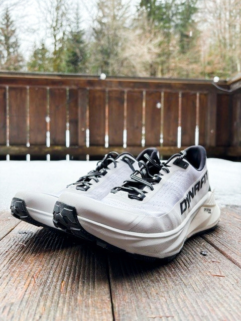 Eine weitere entscheidende Neuerung: Die Passform ist außergewöhnlich geräumig für einen Dynafit-Schuh. Damit sollte der Schuh für die überwältigende Mehrheit aller Fußformen zugänglich sein. Schwammig ist er dank gut funktionierender klassischer Schnürung nicht. Im Mittelfußbereich lässt er sich hervorragend fest schnüren. Auch das Obermaterial wurde runderneuert und macht auf unseren Testläufen einen robusten und gleichzeitig sehr atmungsaktiven Eindruck — ein deutlich verbesserter Punkt.