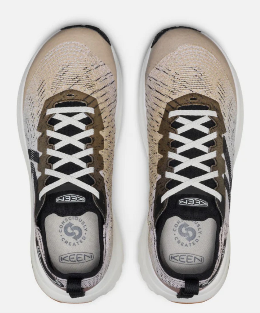 Bevor wir über irgendetwas reden, müssen wir über die ersten Sekunden sprechen – die ersten Sekunden nach dem Reinschlüpfen in den Seek. Was auch immer die Leute von Keen hier gemacht haben, sie haben es richtig gemacht. Selten haben sich unsere Füße so gut aufgehoben gefühlt: weich gepolstert, aber sicher und fest umschlossen. Die Passform des Schuhs ist hervorragend. Die Zehenbox ist eher breit und dürfte Altra- oder Topo-Fans gut gefallen. Eingeschränkt wird der Fuß hier keinesfalls. Aber wird er im Mittelfuß auch gut genug gehalten, um nicht zu schwammig zu werden? Wir sagen ja. Die Schnürung funktioniert im Zusammenspiel mit dem robust wirkenden Obermaterial wirklich gut; der Lockdown des Schuhs ist einwandfrei.