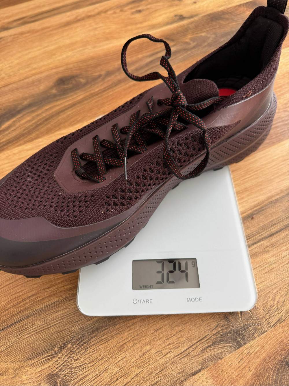 Wir wollen ehrlich sein: Unsere Erwartungen an den namenlosen Schuh aus dem Hause Zara sind nicht besonders hoch. Aber wir wollen dem Zara‑Produkt eine faire Chance geben. Als unsere Bestellung nach ein paar Tagen eintraf, haben wir das Paar direkt ausgepackt. Uns fällt sofort auf: Der Schuh fällt groß aus. Das betrifft nicht nur die Schuhlänge, sondern auch den Einstieg bzw. die Schuhöffnung. Hier beginnen die Probleme. So sehr wir das von Zara angepriesene „Technical Lace System“ auch schnüren, ein ausreichend guter Lockdown gelingt uns nicht. Wir rutschen mit der Ferse hin und her. Trotz engster Schnürung lässt sich der Schuh wie ein Hausschuh ausziehen. Durch fehlende Zusatz‑Ösen ist eine Variation der Schnürung nicht möglich. So ist uns leider schon vor dem ersten Loslaufen klar, dass das schwierig werden wird, denn ohne eine sichere Fixierung des Fußes im Schuh ist Laufen (besonders auf Trails) kaum möglich. Wir tun es trotzdem – und bereuen es direkt wieder.