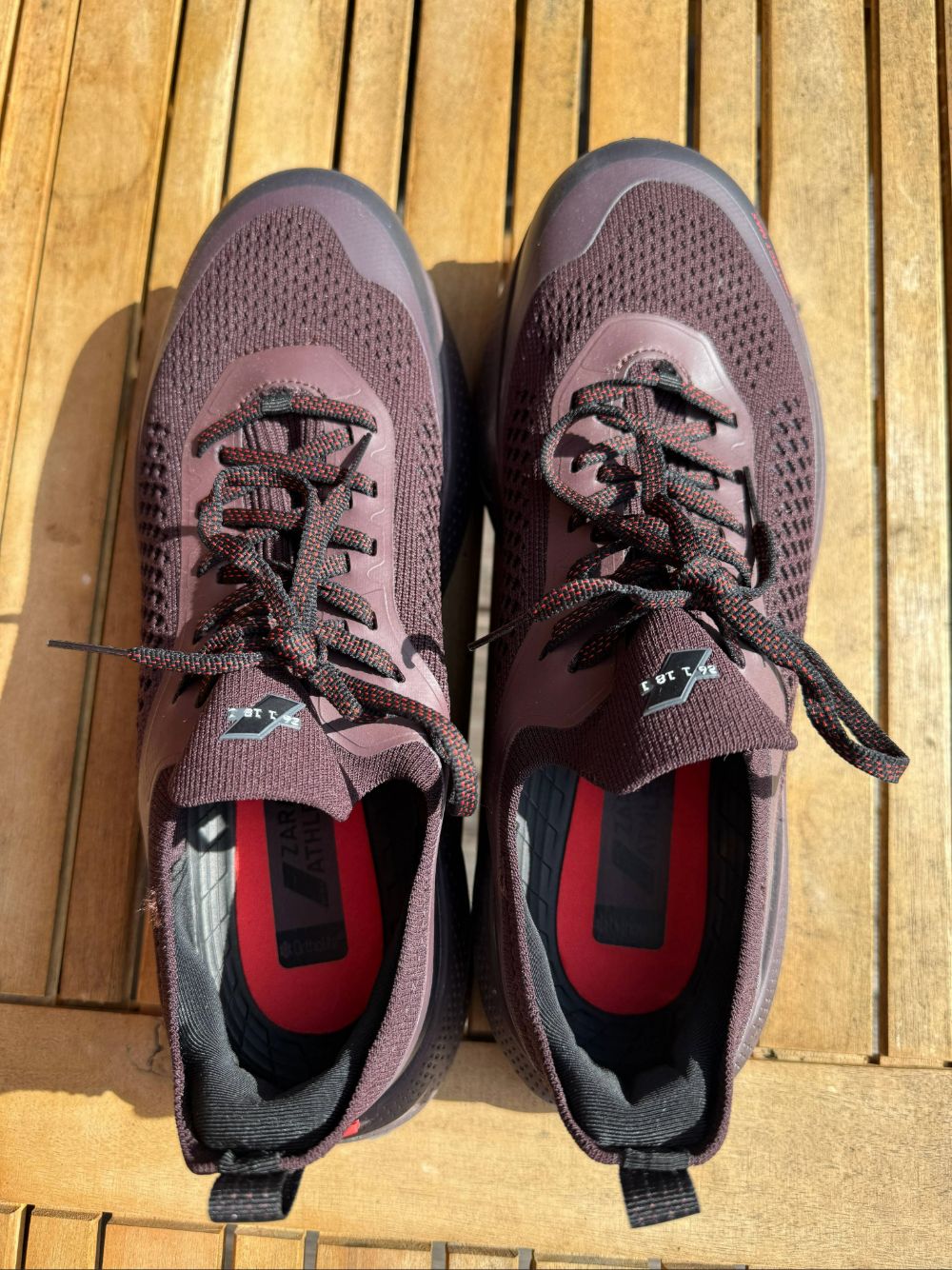 Wir wollen ehrlich sein: Unsere Erwartungen an den namenlosen Schuh aus dem Hause Zara sind nicht besonders hoch. Aber wir wollen dem Zara‑Produkt eine faire Chance geben. Als unsere Bestellung nach ein paar Tagen eintraf, haben wir das Paar direkt ausgepackt. Uns fällt sofort auf: Der Schuh fällt groß aus. Das betrifft nicht nur die Schuhlänge, sondern auch den Einstieg bzw. die Schuhöffnung. Hier beginnen die Probleme. So sehr wir das von Zara angepriesene „Technical Lace System“ auch schnüren, ein ausreichend guter Lockdown gelingt uns nicht. Wir rutschen mit der Ferse hin und her. Trotz engster Schnürung lässt sich der Schuh wie ein Hausschuh ausziehen. Durch fehlende Zusatz‑Ösen ist eine Variation der Schnürung nicht möglich. So ist uns leider schon vor dem ersten Loslaufen klar, dass das schwierig werden wird, denn ohne eine sichere Fixierung des Fußes im Schuh ist Laufen (besonders auf Trails) kaum möglich. Wir tun es trotzdem – und bereuen es direkt wieder.