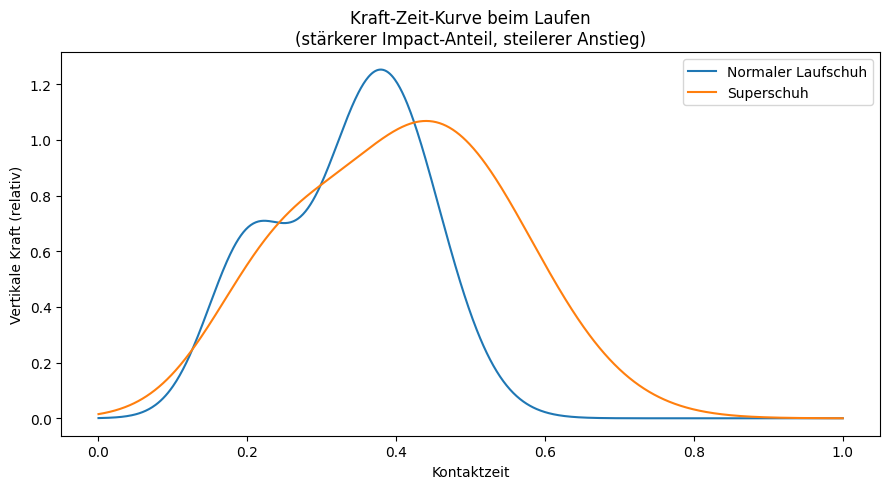 Damit wären die Kernmerkmale eines Superschuhs bereits umrissen. Doch wie beeinflussen Rocker, Schaum und Platte unser Laufen? Und wie machen sie uns schneller? An dieser Stelle muss gleich mit einem Missverständnis aufgeräumt werden: Superschuhe machen uns nicht per se schneller. Ein Sprinter oder Mittelstreckler profitiert deutlich weniger von diesem Konzept als ein Marathonläufer. Der Grund dafür liegt auf der Ebene der Ökonomie. Superschuhe verbessern unsere Laufökonomie durch spezielle Materialien und Konstruktionen so, dass wir pro Schritt bei gleicher Geschwindigkeit weniger Energie aufwenden müssen als mit herkömmlichen Schuhen. Oder umgekehrt formuliert: Bei gleichem Energieaufwand lässt sich mit Superschuhen etwas schneller laufen.